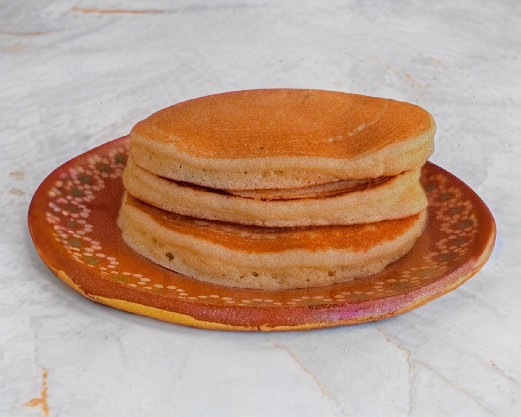 3 piezas de hotcakes, con fresas y espolvoreado con azucar glass