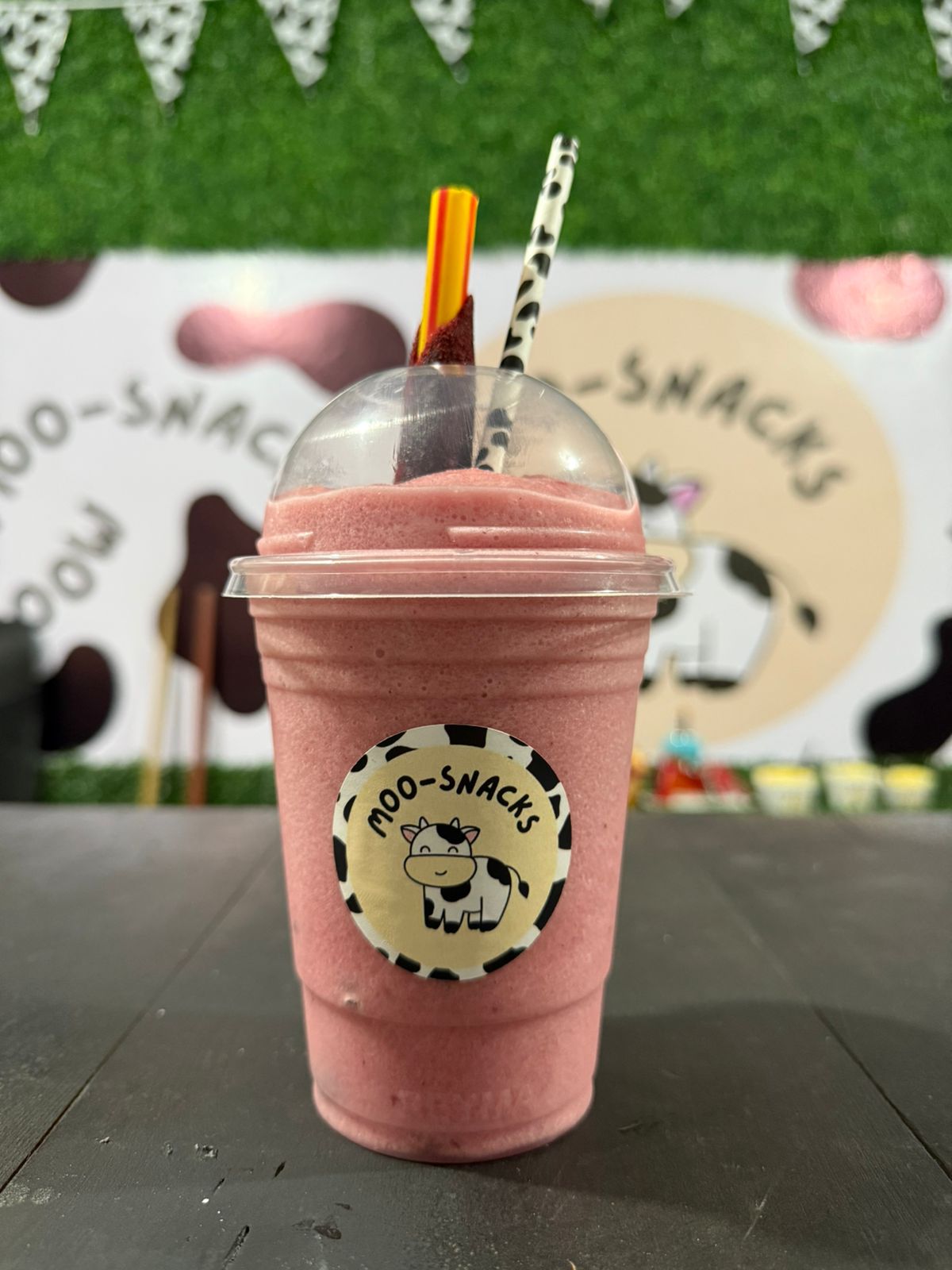 Smoothie de mixed berries con una banderilla de tamarindo.
