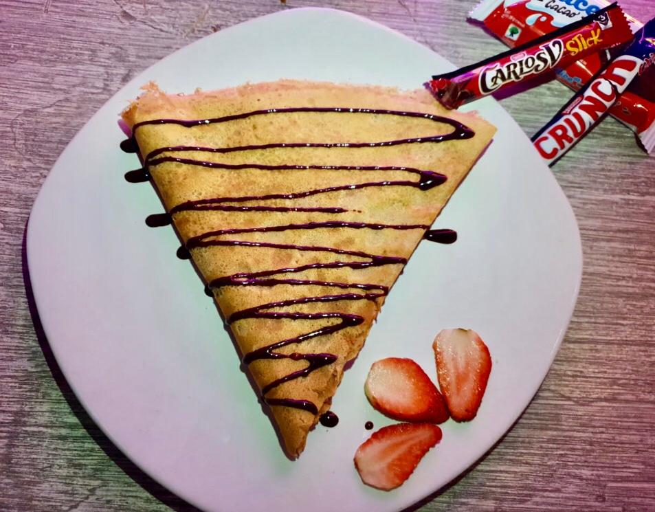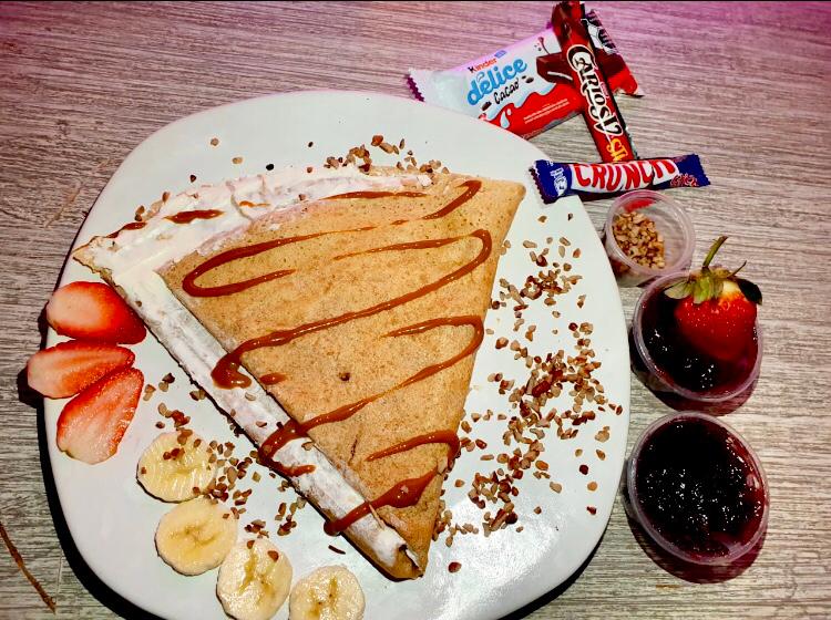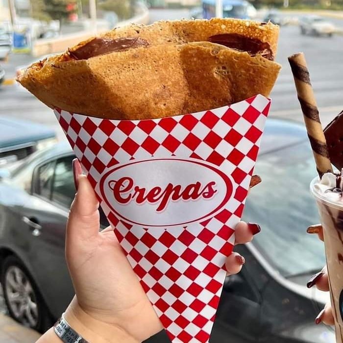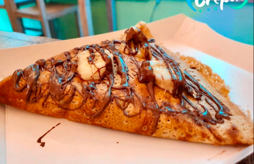 Deliciosa crepa de un untable + tu bebida caliente.