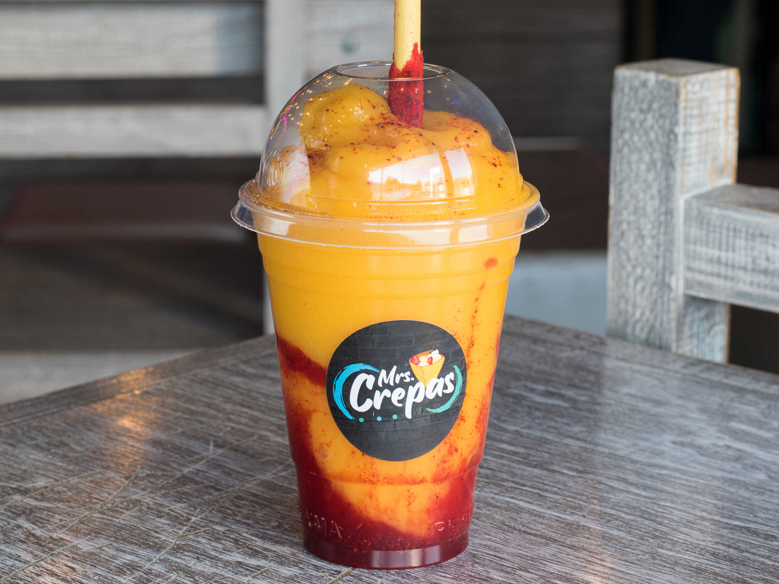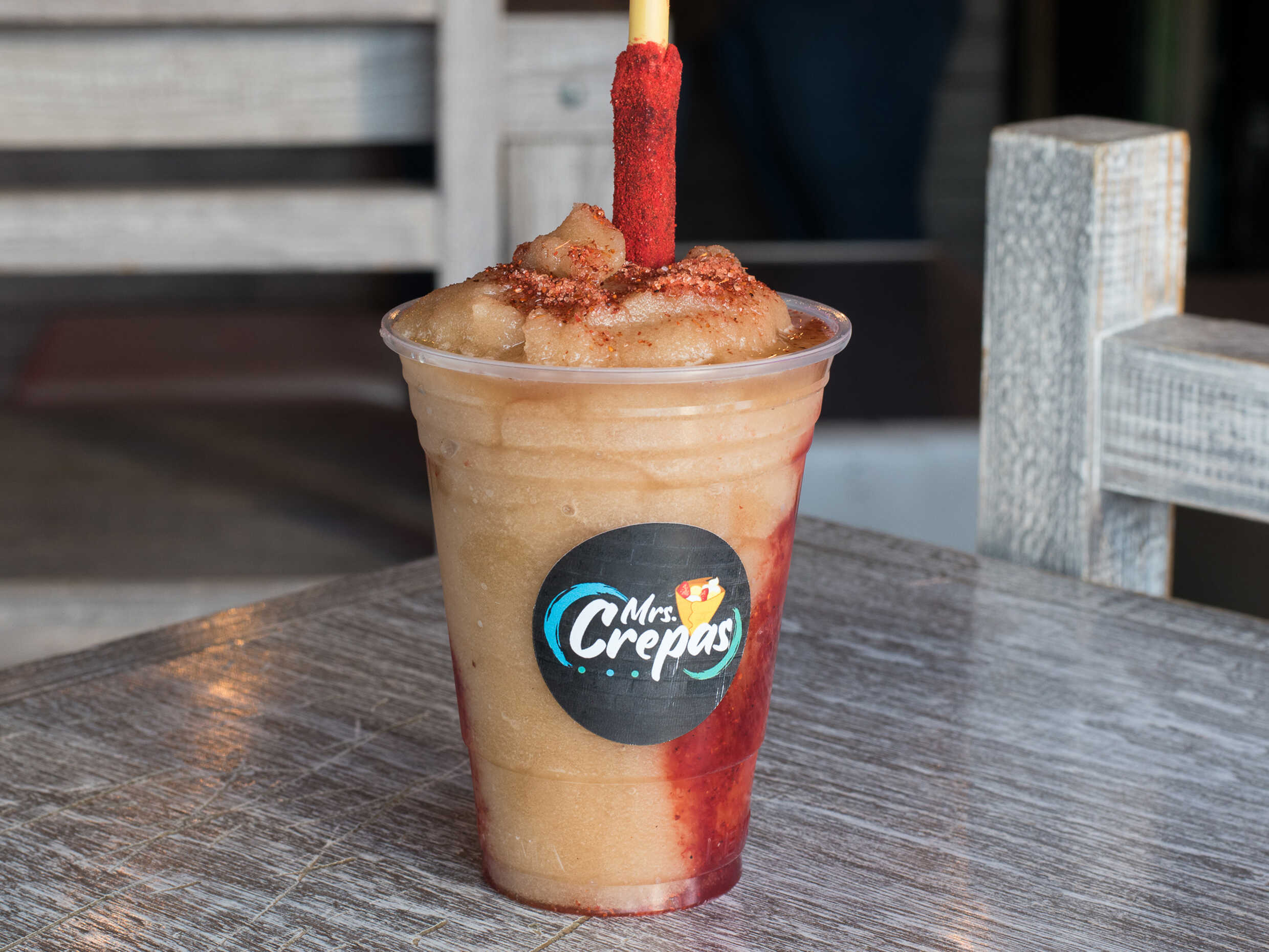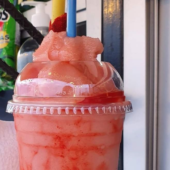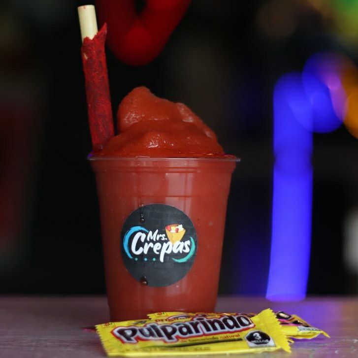Bebida a base de agua con picafresas molidas, chamoy y miguelito incluído