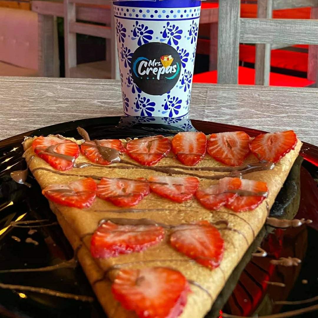 Deliciosa crepa cubierta por dentro de Mermelada de Zarzamora , agrega con costo extra fruta o toppings a tu elección