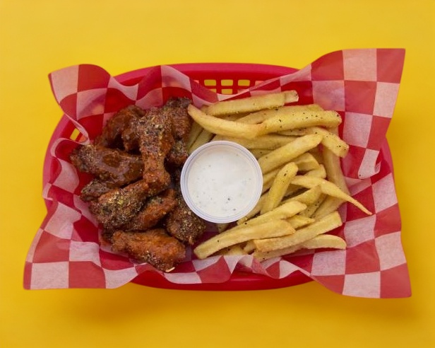 8 pzas de deliciosas alitas, bañadas en la salsa de tu preferencia y acompañadas de papas a la francesa
