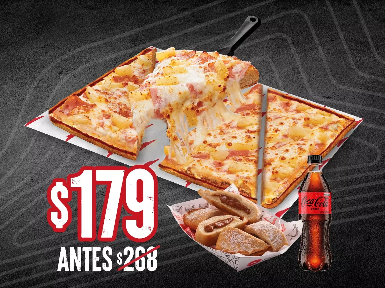 4 deliciosas combinaciones en 16 rebanadas (Meat Lover´s, Mexicana, Hawaiana/rajas y Vegetariana)