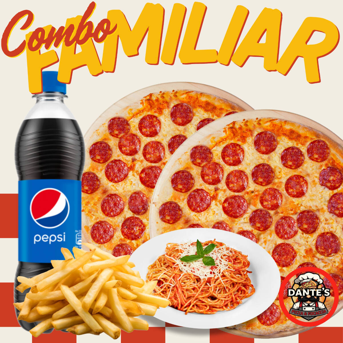 Pizza de Pepperoni*1 + Pizza Hawaiana*1 + Papas a La Francesa*1 + Pomodoro*1 + Pepsi 2 lts*1 (Manda mensaje para elegir sabor de pizza y de refresco)