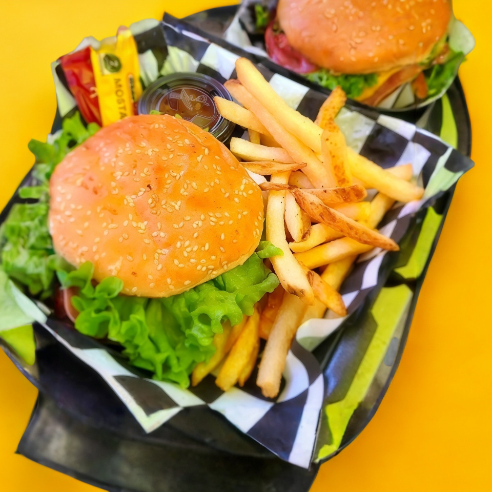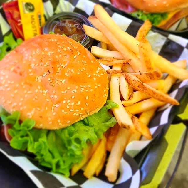 Hamburguesa de res en COMBO + 200 GRAMOS DE PAPAS A LA FRANCESA + 1 REFRESCO