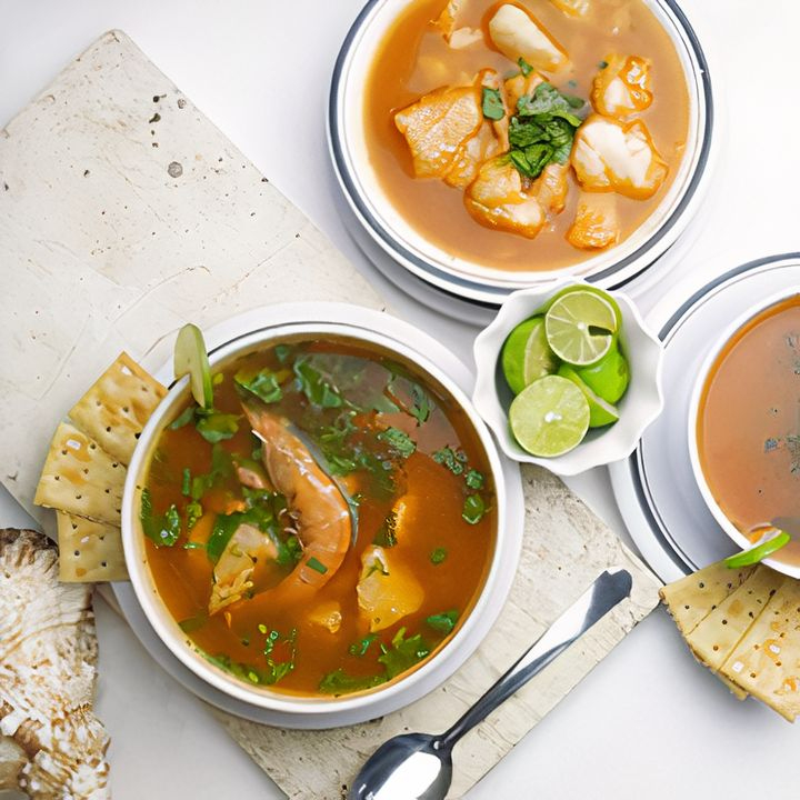 Sopa de mariscos con Jaiba, Pescado, Camarones y Pulpo.