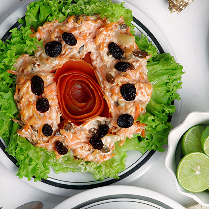 Cremosa ensalada de zanahoria, pasa y piña