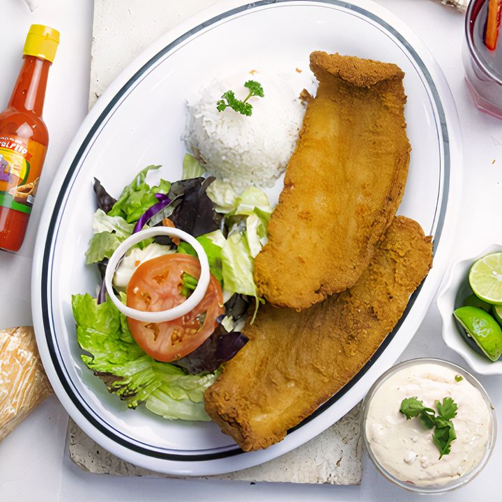 1 o 2 piezas de Filete de pescado a tu gusto con ración de arroz y ración de ensalada.
