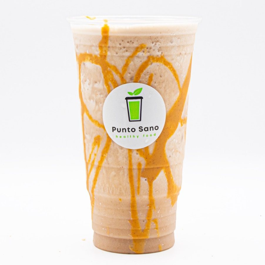 1 Scoop de proteína ISO sabor churro, avena, leche de almendras sugar free, plátano y crema de cacahuate sugar free.