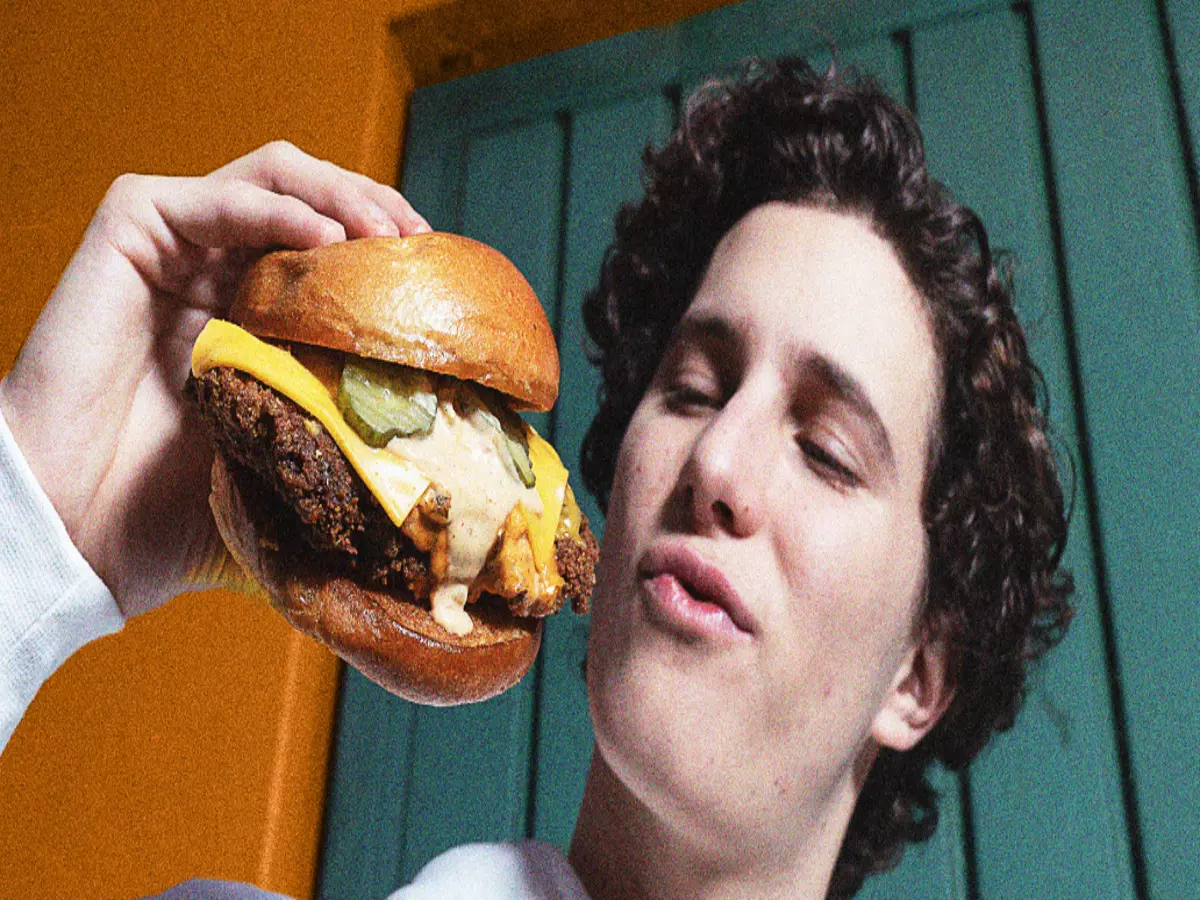Al mejor estilo Nashville Hot Chicken, jugosa pechuga crujiente apanada con especies y chiles picantes, dos rebanadas de queso americano y pepinillos en un delicioso pan de papa con Menjurgito Que Chicken aparte.