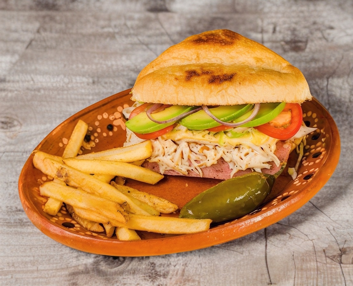 Empanadas de nixtamal doraditas, rellenas del guiso de tu elección con queso gratinado, acompañadas de lechuga y tomate.