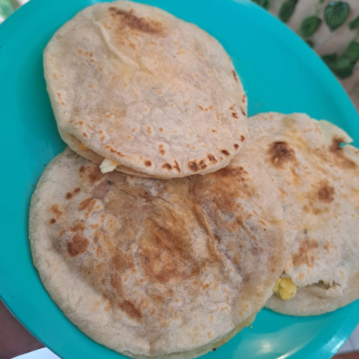 Omelette con queso y jamón, frijoles y tortillas