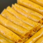 Taquitos al vapor rellenos de chicharrón prensado, papa y frijoles, acompañados de lechuga y salsas