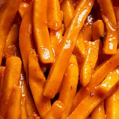 Papas bañadas en salsa Buffalo,chiles y sazonadas con lemon pepper.