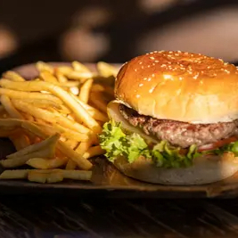 Hamburguesa de boneless con salsa a elegir, lechuga, tomate y aderezo ranch. Incluye papas a la francesa.