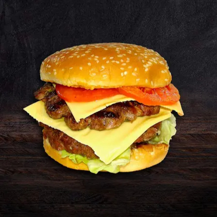 Doble carne de sirloin con queso amarillo, jamón, tocino, lechuga, tomate, cebolla a la plancha y aderezos. Incluye papas a la francesa.
