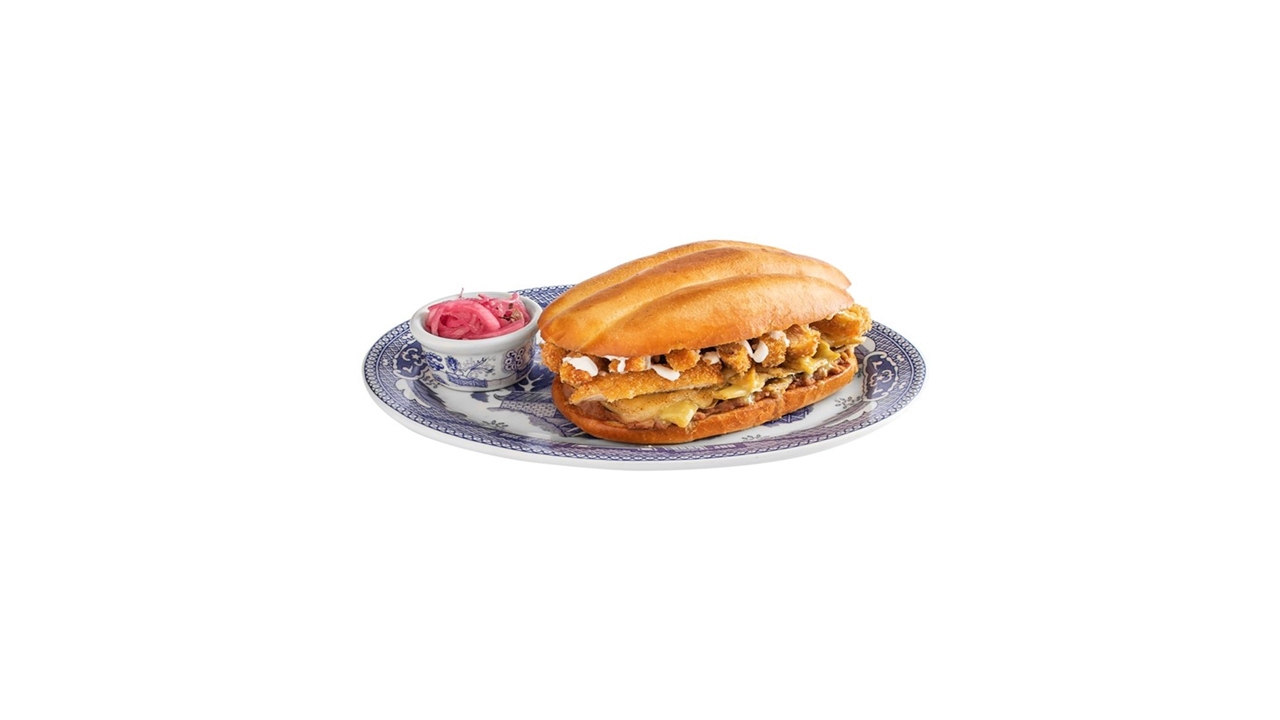 Torta de Milanesa 100 g. (1 pza.) Con aguacate, jitomate y queso gouda.
