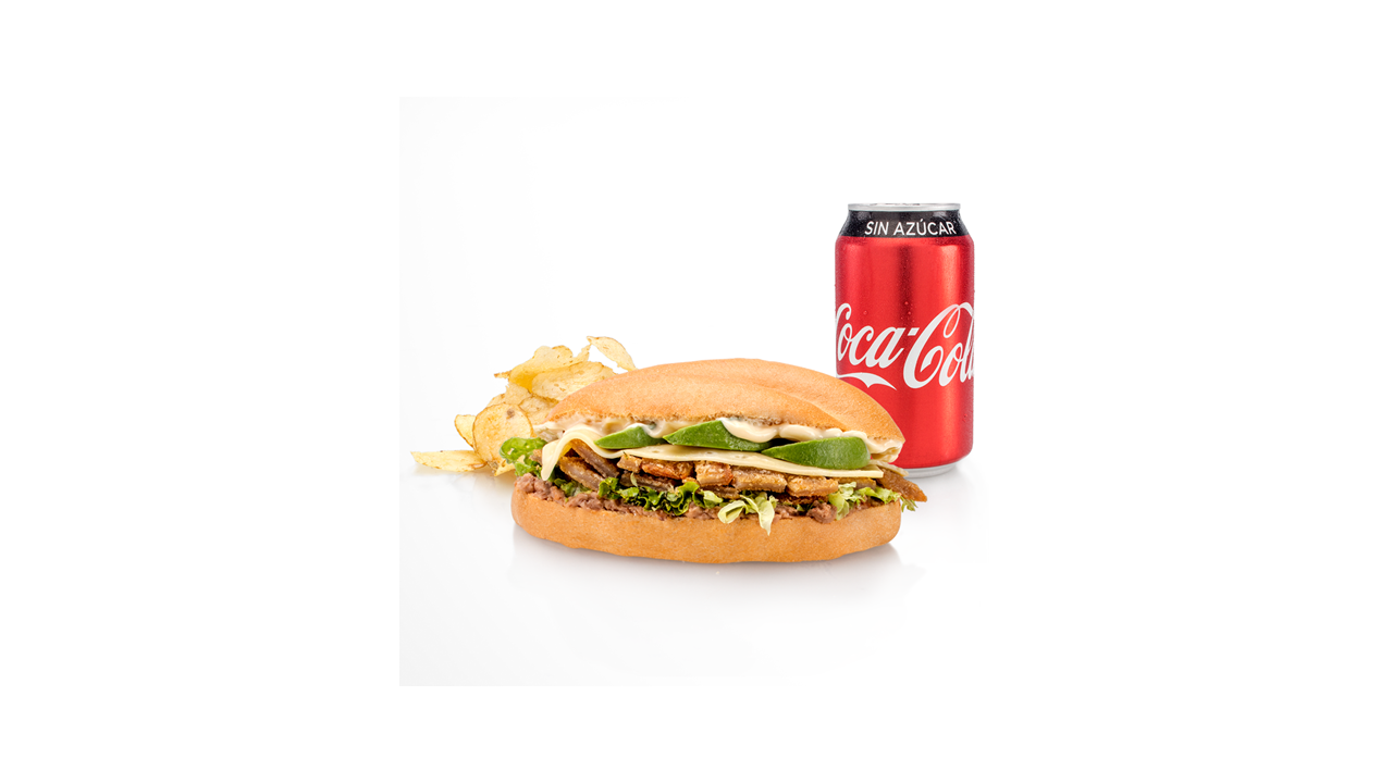 Pastor 2 pza., Bistec 2 pza. y Chorizo 2 pza. Incluye 3 bebidas Café 400 ml o Té 400 ml o Refresco 355 ml o Capuchino 400 ml