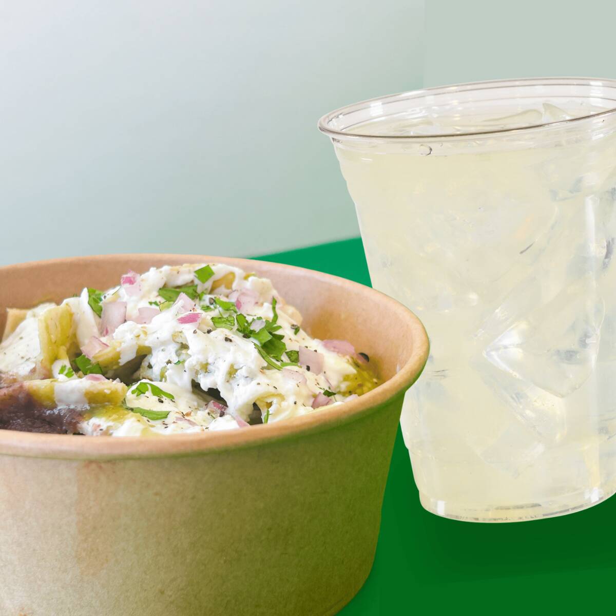 Nuestros clásicos chilaquiles con pollo más tu bebida favorita.