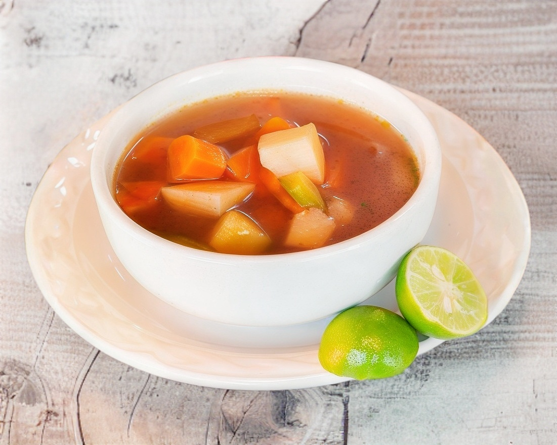 Lto de caldo de pollo con pieza verduras , arroz , tortillas