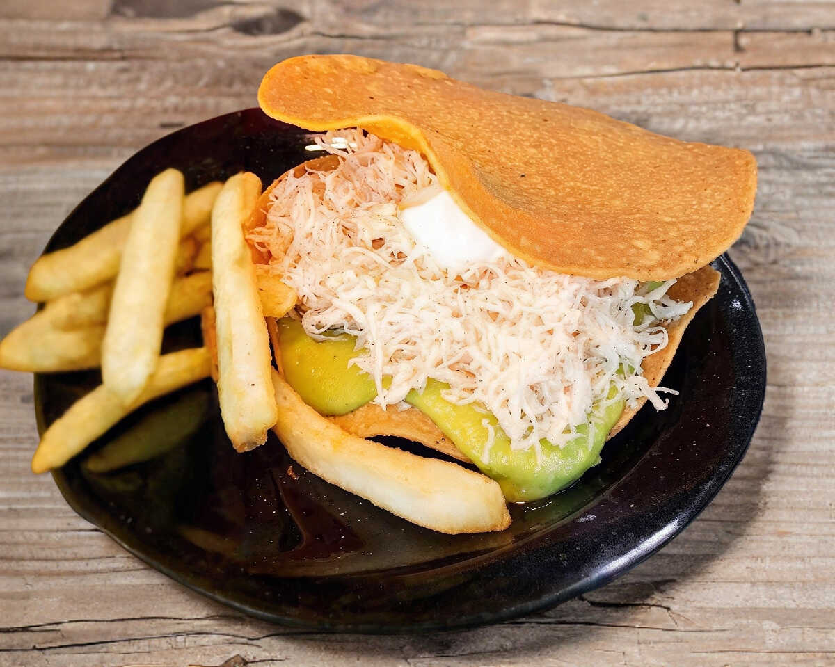 Tostada infantil , porción papas a la francesa, refresco peñafiel sabor 355 ml