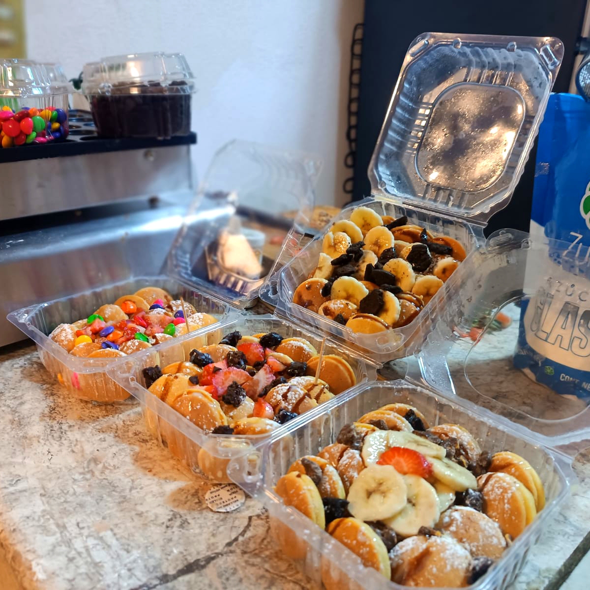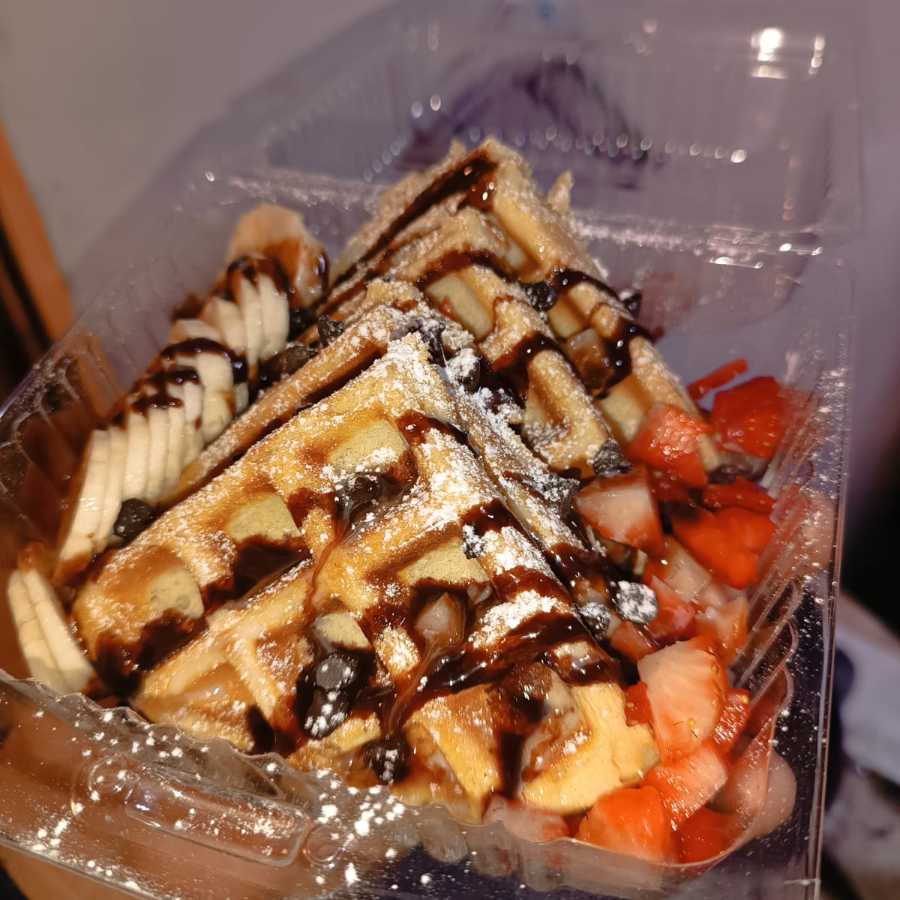 waffles preparados al gusto con diferentes ingredientes y topings a elegir