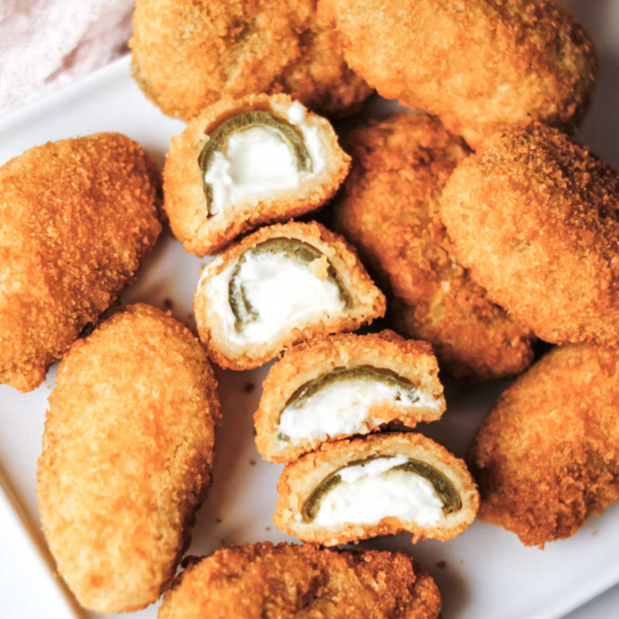 6 Exquisitos jalapeños empanizados rellenos de queso crema.