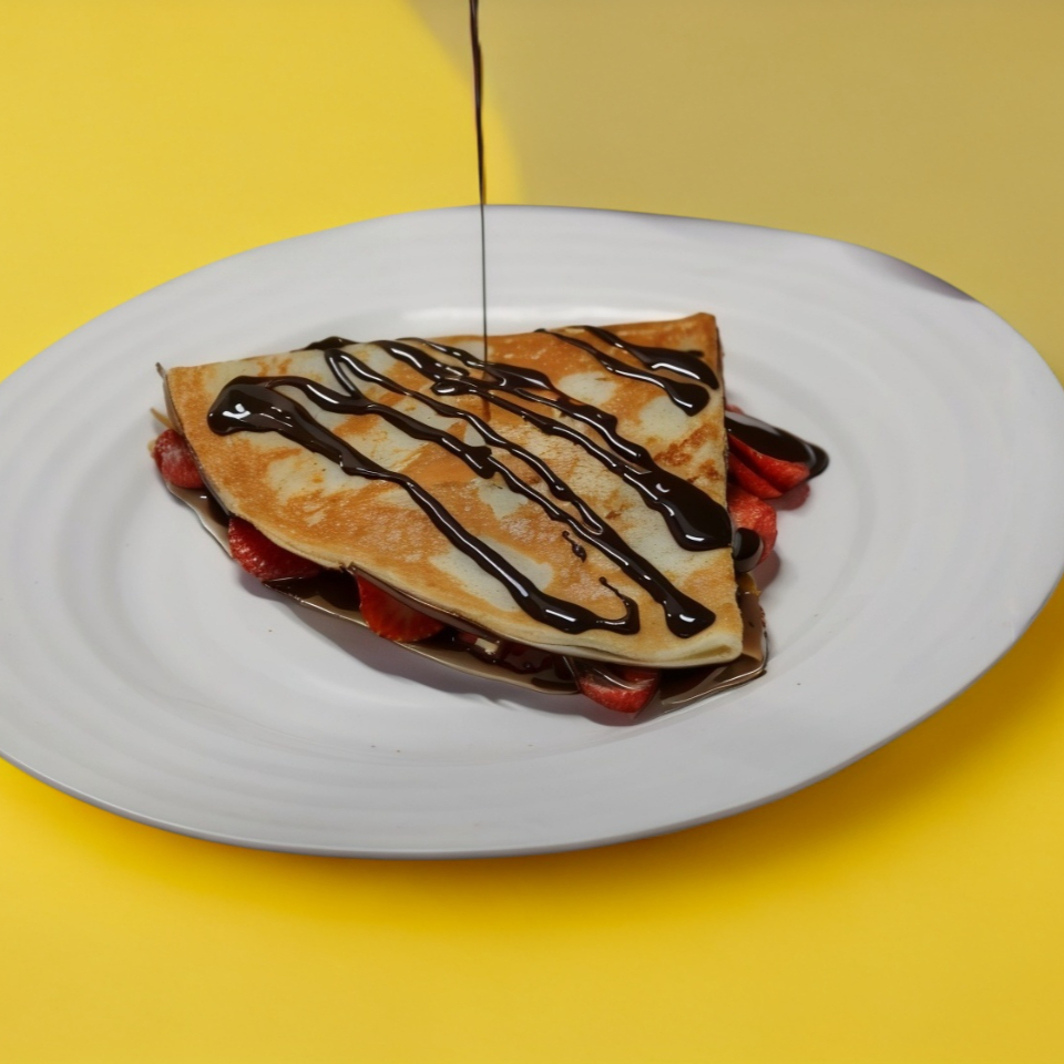 INCLUYE: base de nutella y philadelphia, fresas, platano, lechera, TODO DENTRO DE TU CREPA y como topping lechera.