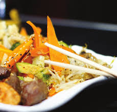 Mezcla de vegetales sazonado al estilo oriental y filete de res