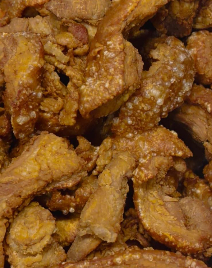 500 g De chicharrón durito, cebolla morada con habanero, 2 tostadas, pico de gallo, salsa verde, salsa roja, 1/4 frijoles charros.