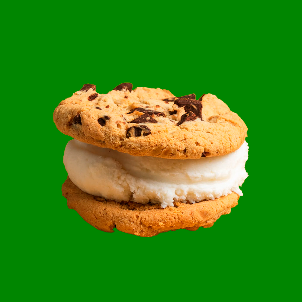 Sandwich de galletas con relleno de helado sabor vainilla.