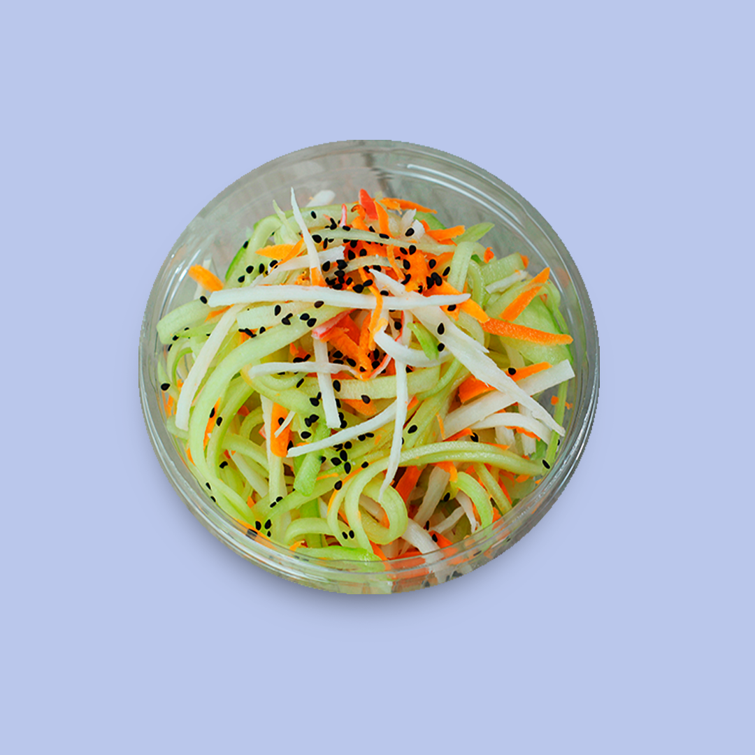 Pepino, zanahoria, surimi, ajonjolí y un toque de vinagre dulce