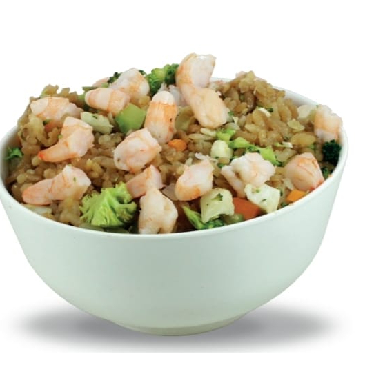 Arroz frito con camarón, mix de vegetales y un toque de soya.