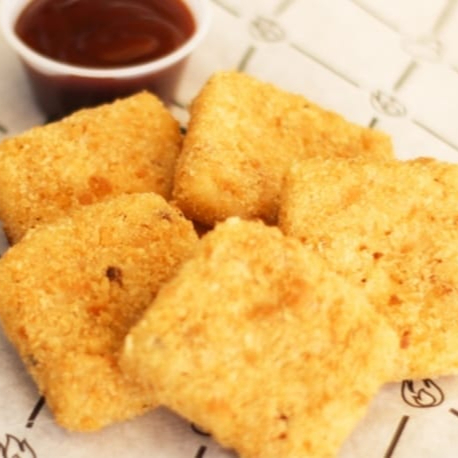 5 cubos de queso manchego empanizados acompañados con aderezo chipotle..