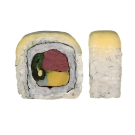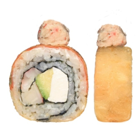 Por dentro: surimi, philadelphia y aguacate. Por fuera: tampico, camarón empanizado y pepino.