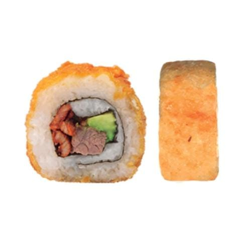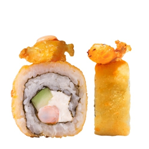 Por dentro: camarón, philadelphia, aguacate y pepino. Por fuera: va empanizado.