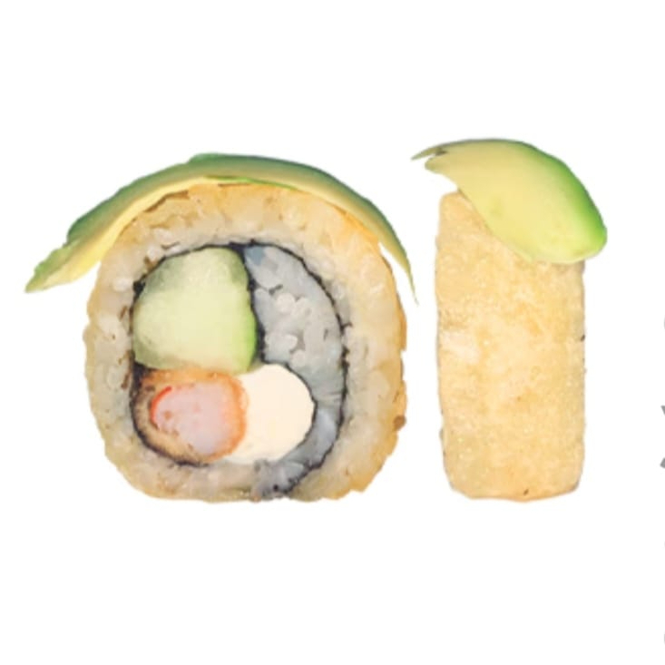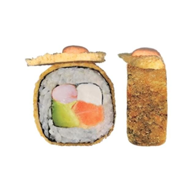 Por dentro: surimi, philadelphia y aguacate va empanizado. Por fuera: tampico