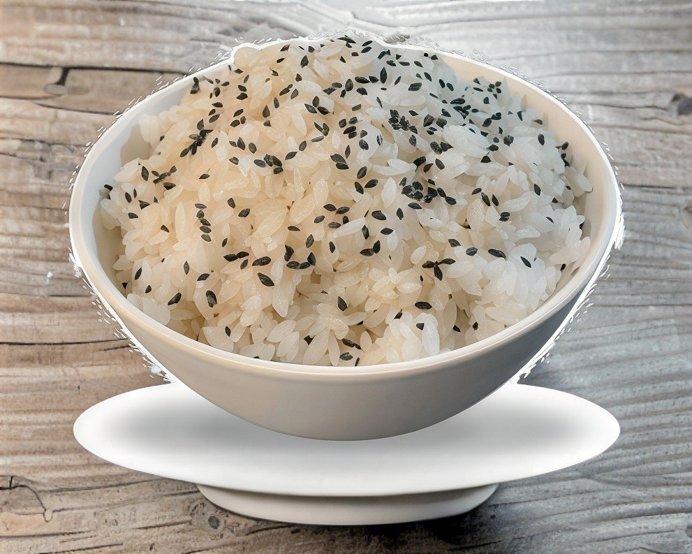 Arroz al vapor con ajonjolí negro.