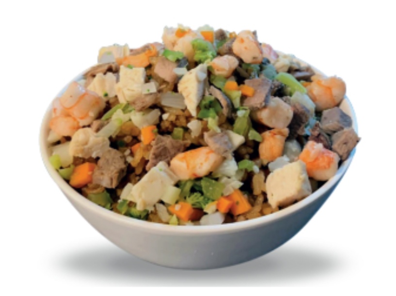 Arroz frito, mix de vegetales, pollo, carne de res y camarón.