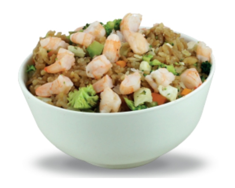 Arroz frito, mix de vegetales y camarón.