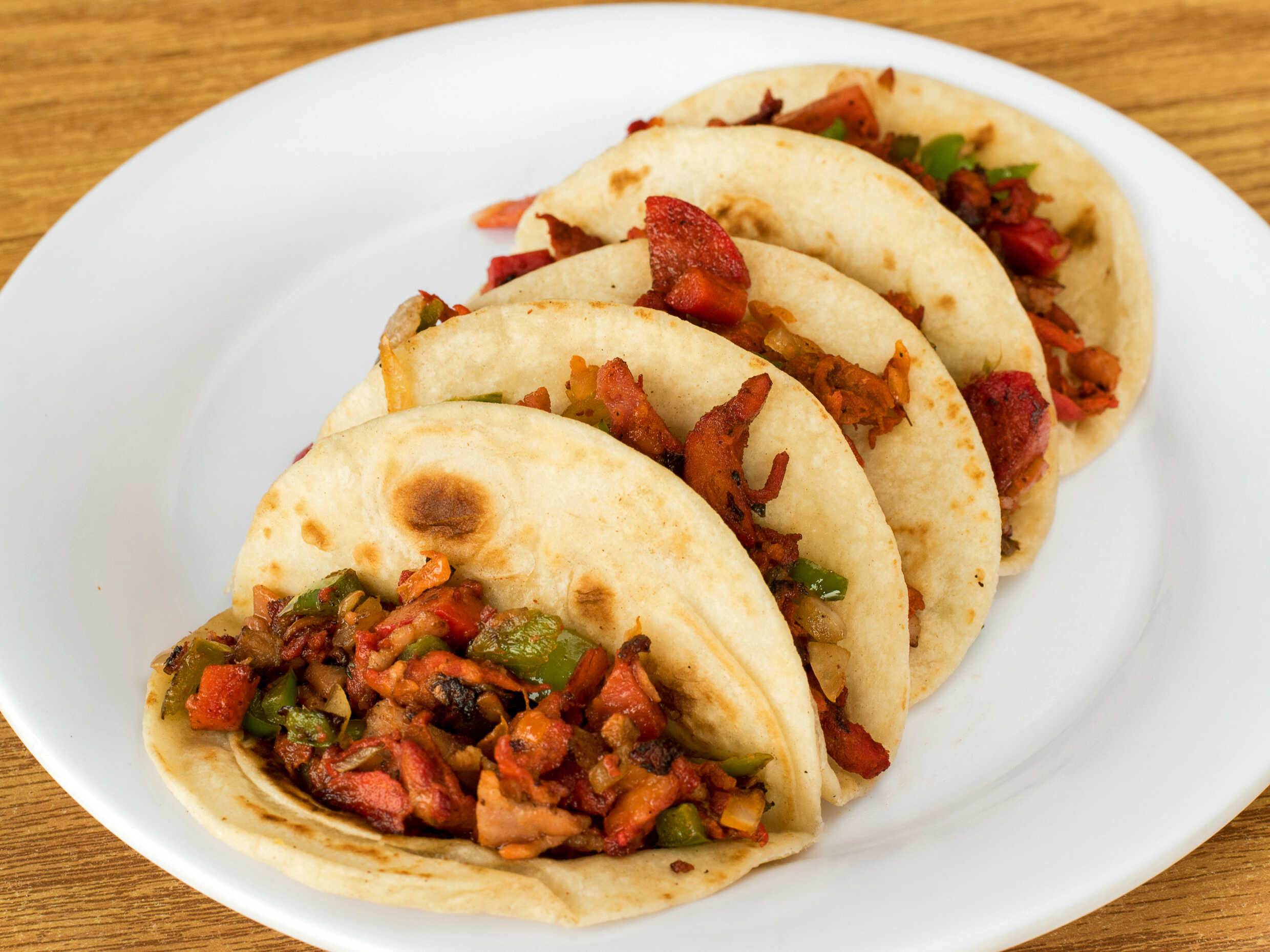 Elige tu tortilla de maíz o harina.