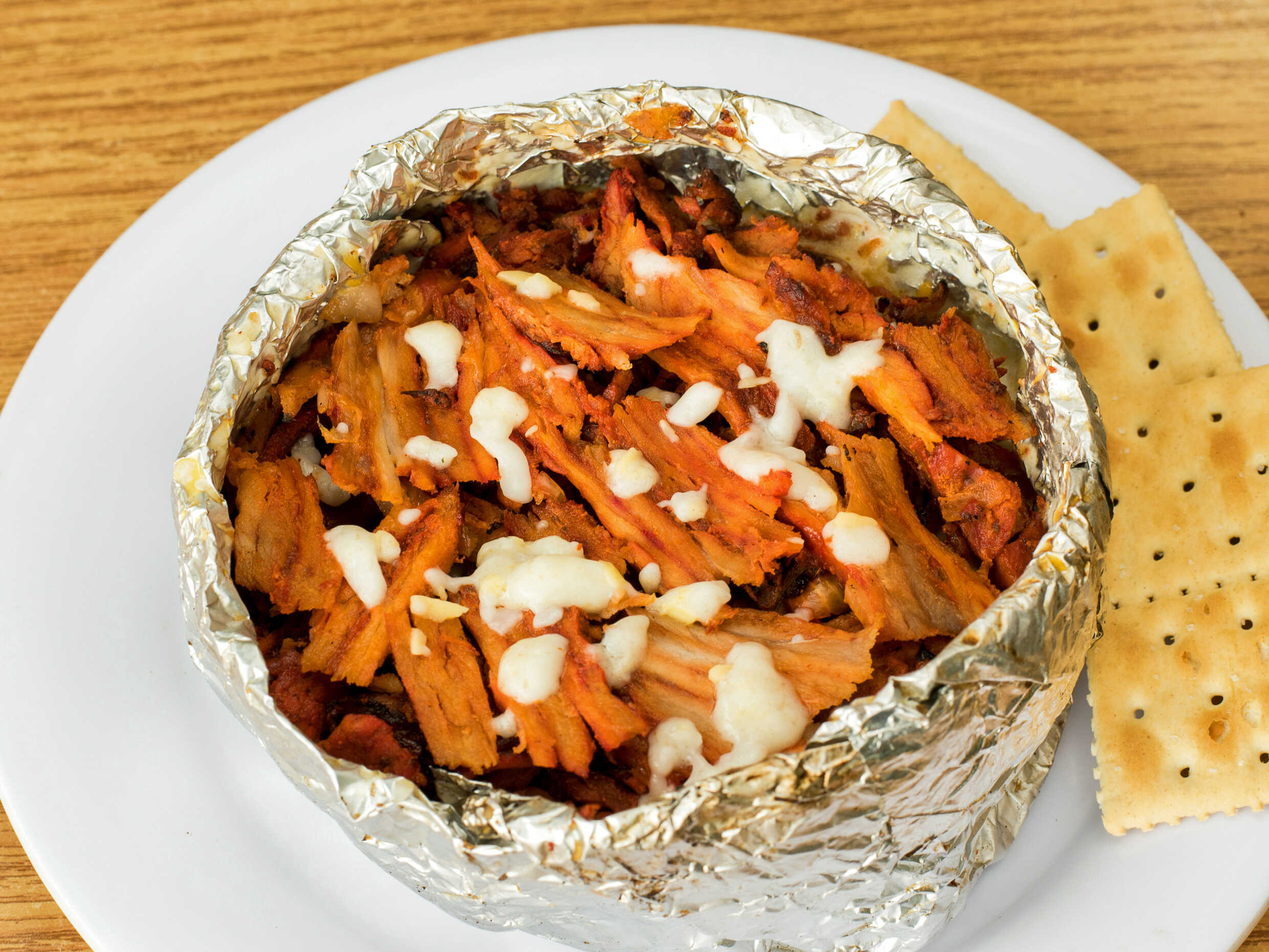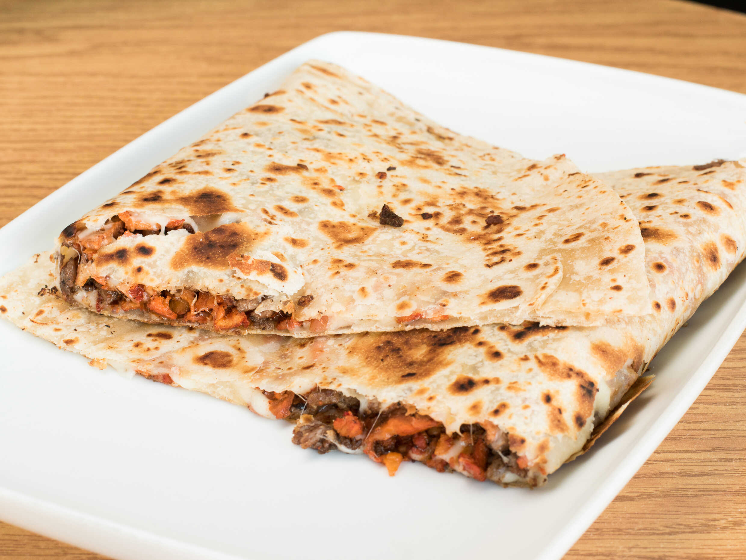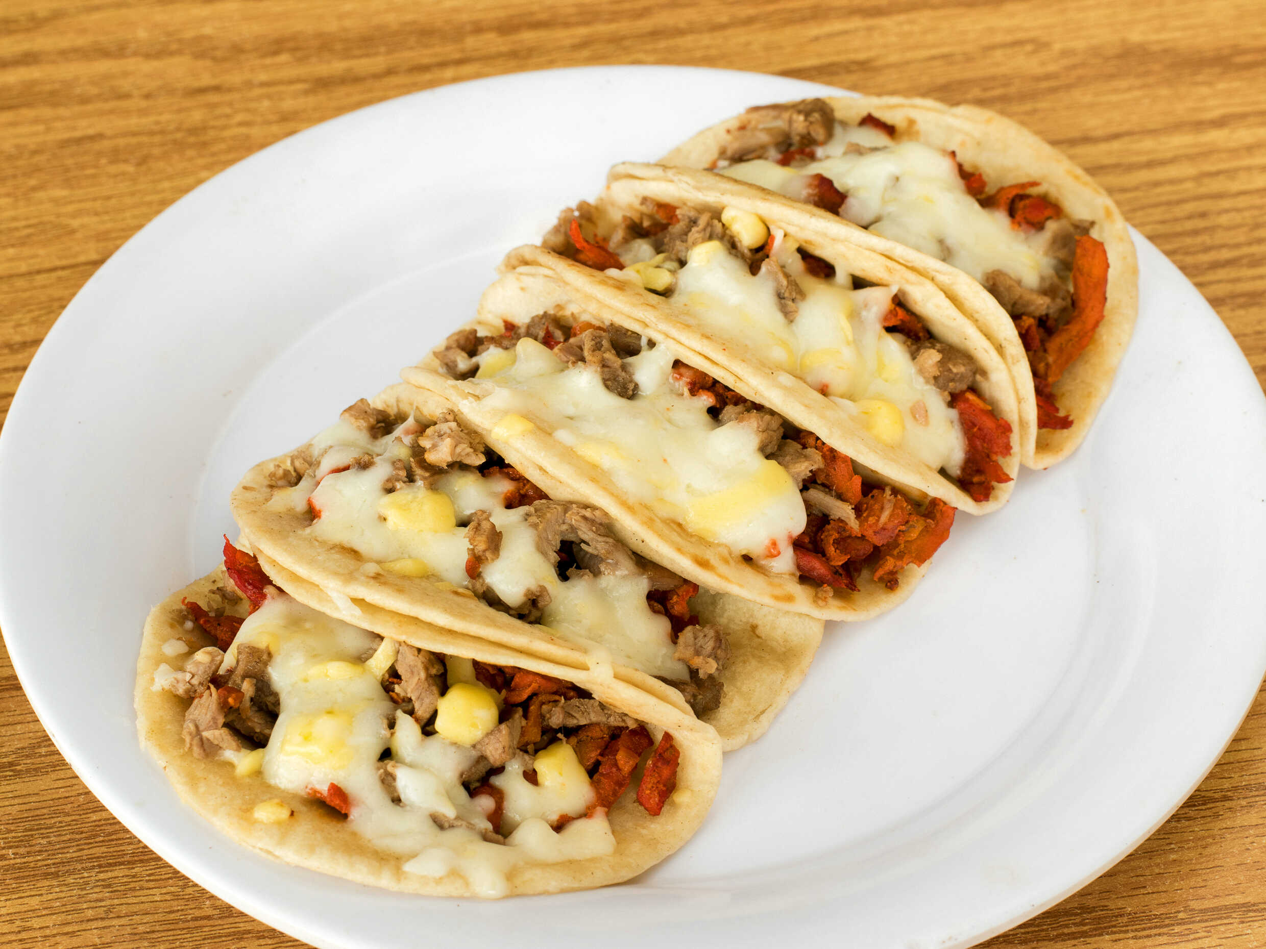 1 taco tortilla gigante de harina carne de res y carne d pastor queso gratinado