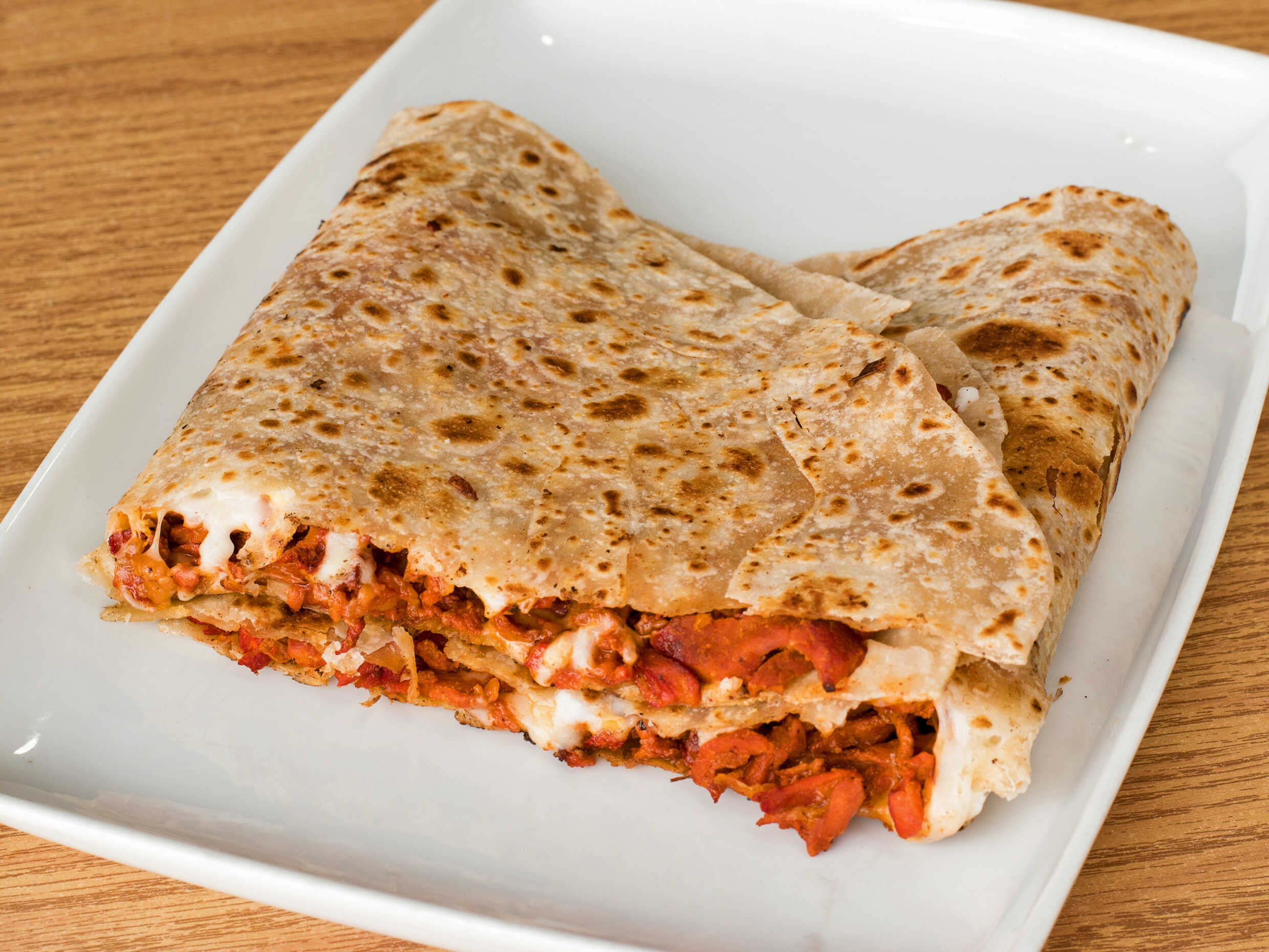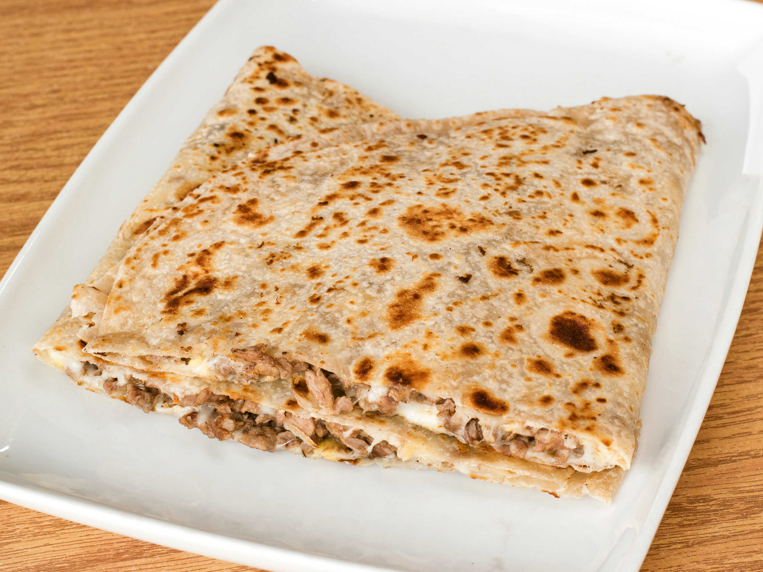 1 taco tortilla gigante de harina carne de arrachera y carne d pastor queso gratinado