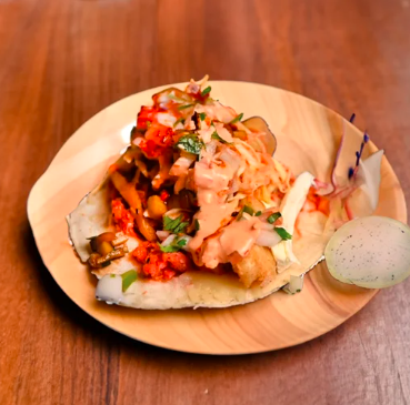 Taco con doble tortilla de maíz, chile caribe, queso chihuahuay y philadelphia.
