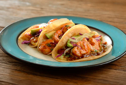 Taco con doble tortilla de maíz, camarón y pescado.