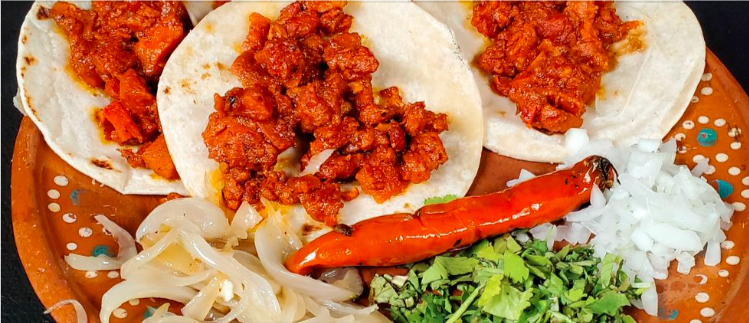 5 Tacos en maíz nixtamalizado con pastor asado a las brasas.