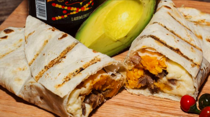 Tortillas de harina de burro,queso asadero,queso amarillo sirloin asado y picado alas brasas.