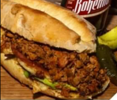 pan artesanal,mayonesa,aguacate,pastor asado a las brasas,queso asadero