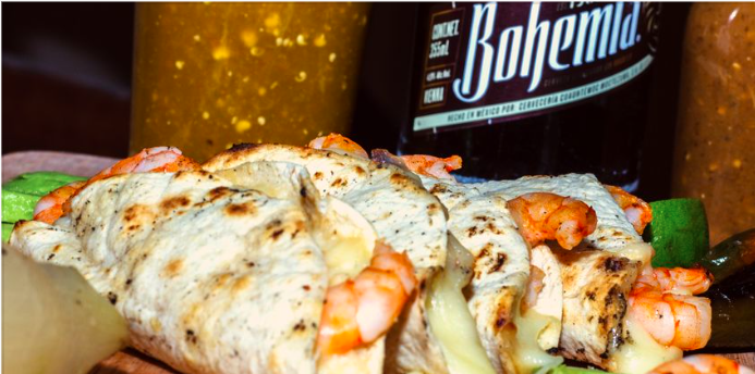350gr top sirloin,350gr de arrachera,350gr Fajita de polllo,cebolla asada chiles toreados,salsas y tortillas,3 quesadillas.