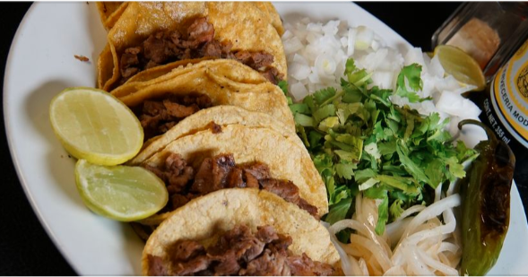 5 Tacos De Suculento Sirloin Asado A La Parrilla Servidos En Tortillas De Harina O Maiz Blanco